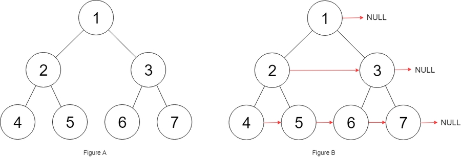 }Populate each next pointer to point to its next right node. If there is no next right node, the next pointer should be set to NULL.