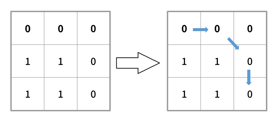 Output: 2Input: grid = [[0,0,0],[1,1,0],[1,1,0]]